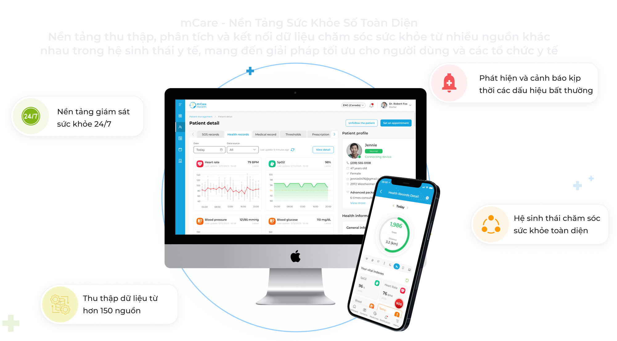 Với nền tảng vững chắc trong lĩnh vực công nghệ y tế, mCare mang đến các giải pháp số sáng tạo giúp nâng cao hiệu quả theo dõi sức khỏe, tăng cường tương tác với bệnh nhân và tối ưu hóa hoạt động cho các đơn vị cung cấp dịch vụ chăm sóc sức khỏe.